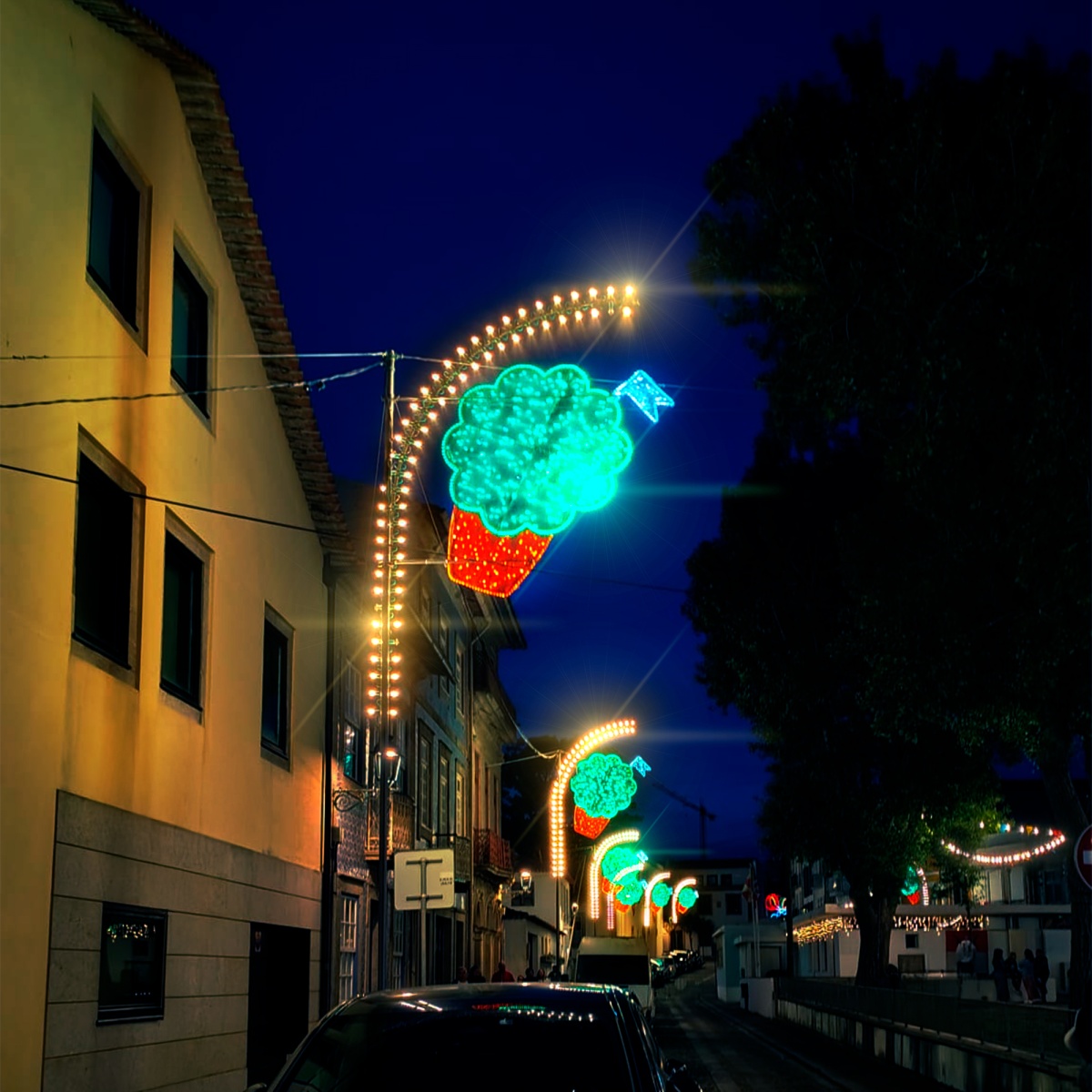 Our lighting solutions highlight the identity and joy of local festivals with elegance and visual impact.