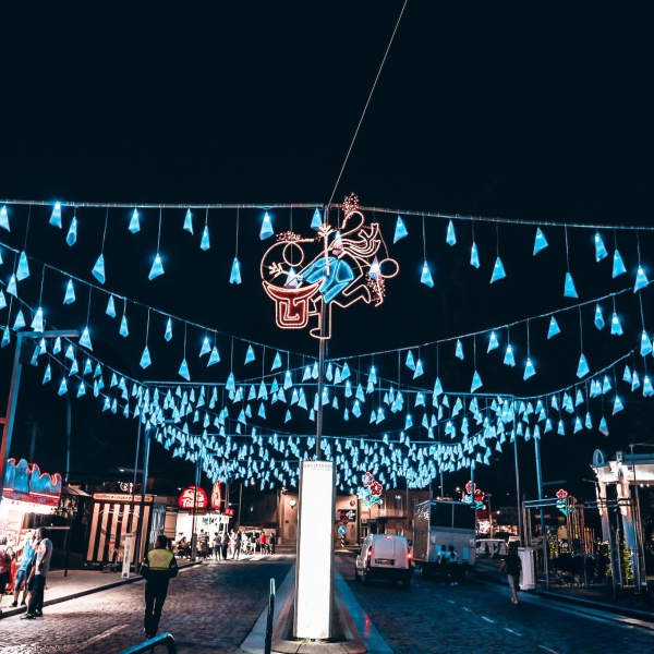As nossas soluções de iluminação realçam a identidade e a alegria das festas locais com elegância e impacto visual.